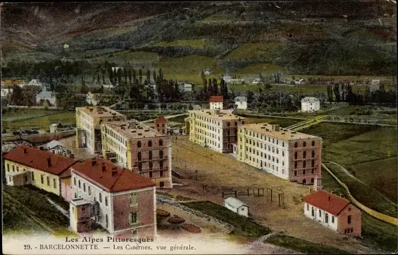 Ak Barcelonnette Hautes Alpes, Les Casernes, vue generale