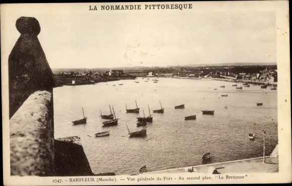 Ak Barfleur Manche, Vue générale du Port, Au second plan, La Bretonne