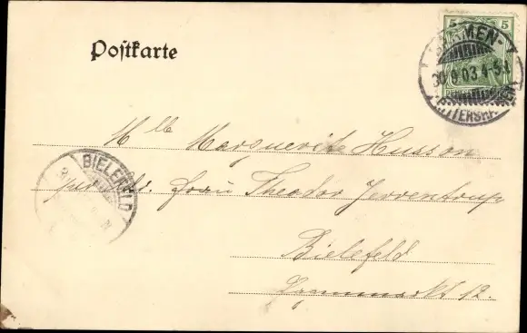 Zustand, siehe Scan, gelaufen, 1903 - ca 14 cm X 9 cm