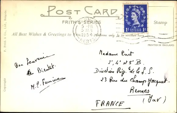 Zustand, siehe Scan, gelaufen, 1954 - ca 14 cm X 9 cm