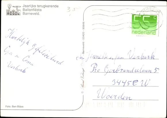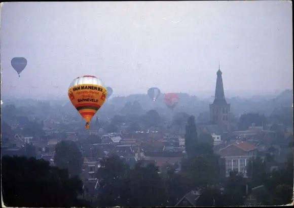 Ak Barneveld Gelderland, Heißluftballons über der Stadt