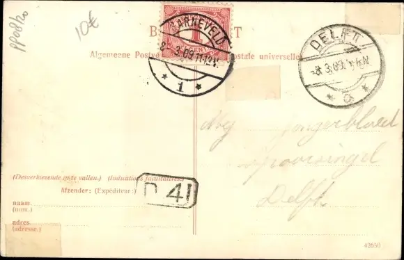 Zustand, siehe Scan, gelaufen, 1909 - ca 14 cm X 9 cm