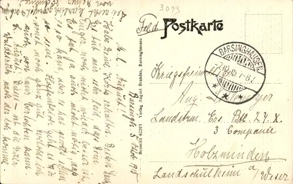 Zustand, siehe Scan, gelaufen, 1915 - ca 14 cm X 9 cm