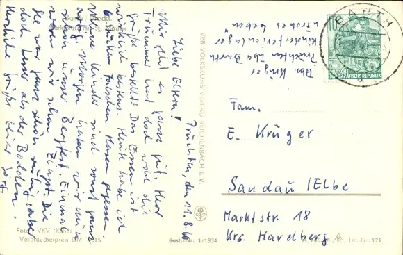 Zustand siehe Scan, gelaufen, 1960 - ca 14 cm X 9 cm