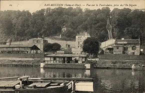 Ak Bas Meudon Hauts de Seine, Funiculaire, vue prise de l'Ile Seguin