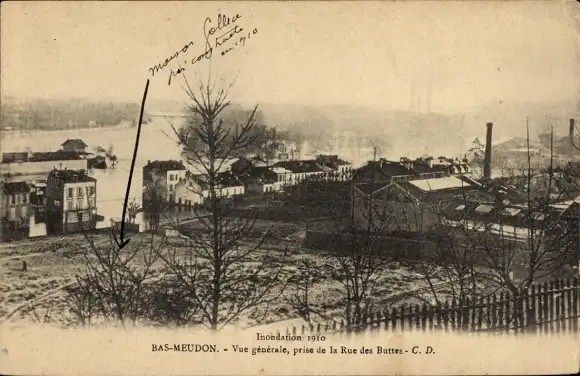 Ak Bas Meudon Hauts de Seine, Gesamtansicht, prise de la Rue des Buttes