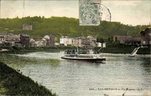 Ak Bas Meudon Hauts de Seine, L'Ile Seguin, Salondampfer