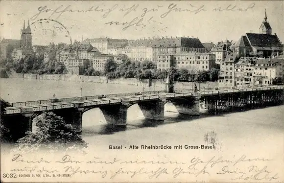 Ak Basel Bâle Stadt Schweiz, Alte Rheinbrücke, Groß-Basel