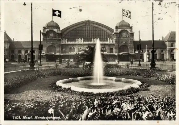 Ak Basel Bâle Stadt Schweiz, Bundesbahnhof, Brunnen