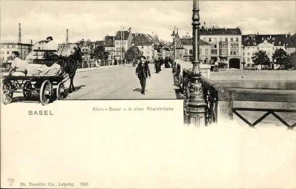 Ak Basel Bâle Stadt Schweiz, Klein Basel von der alten Rheinbrücke
