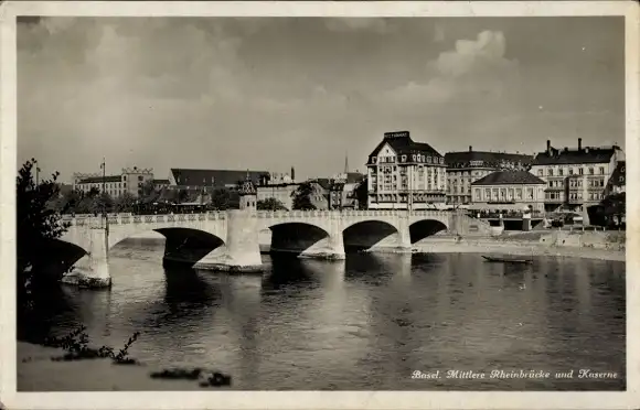 Ak Basel Bâle Stadt Schweiz, Mittlere Rheinbrücke und Kaserne