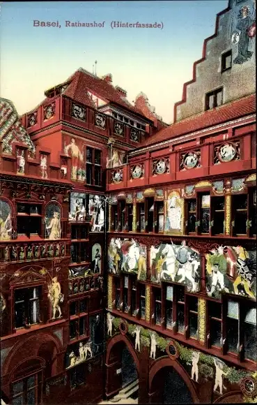 Ak Basel Bâle Stadt Schweiz, Rathaushof, Hinterfassade