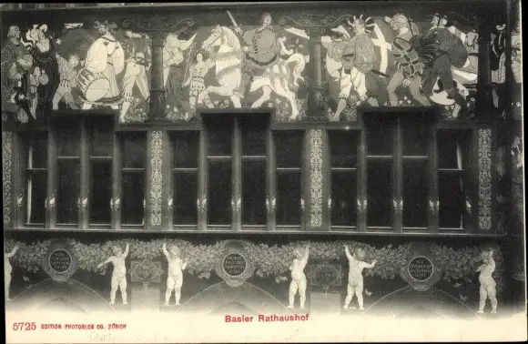 Ak Basel Bâle Stadt Schweiz, Wandgemälde im Rathaushof