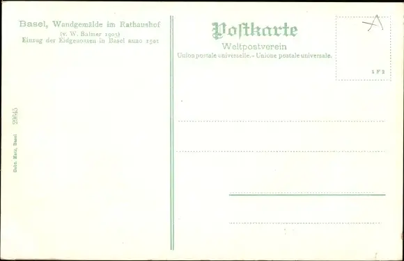 Ak Basel Bâle Stadt Schweiz, Wandgemälde im Rathaushof, Einzug der Eidgenossen in Basel 1501