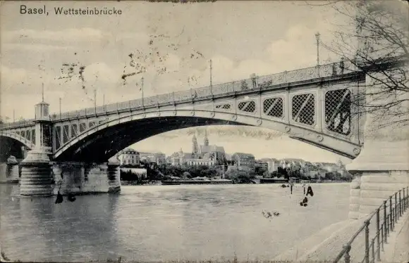 Ak Basel Bâle Stadt Schweiz, Wettsteinbrücke
