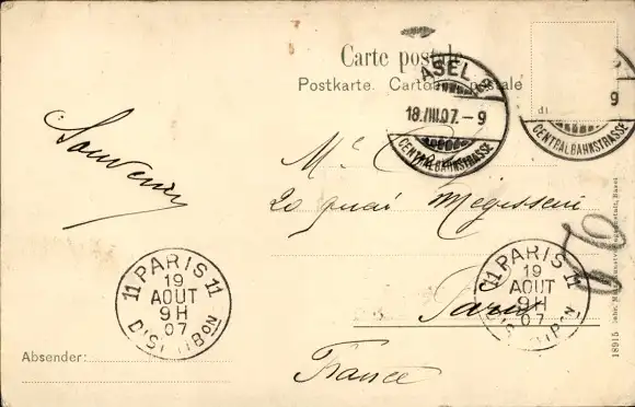 Zustand, siehe Scan, gelaufen, 1907 - ca 14 cm X 9 cm
