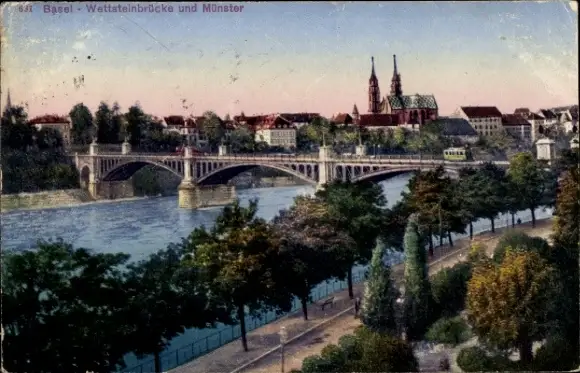 Ak Basel Bâle Stadt Schweiz, Wettsteinbrücke, Münster