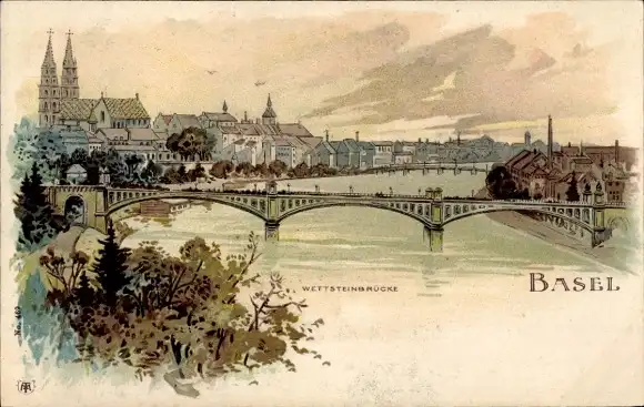 Ak Basel Bâle Stadt Schweiz, Wettsteinbrücke, Stadtpanorama