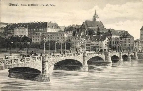 Ak Basel Bâle Stadt Schweiz, neue mittlere Rheinbrücke