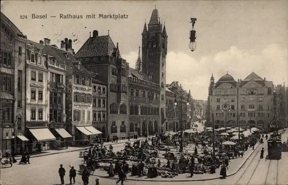Ak Basel Basel Stadt Schweiz, Rathaus und Marktplatz