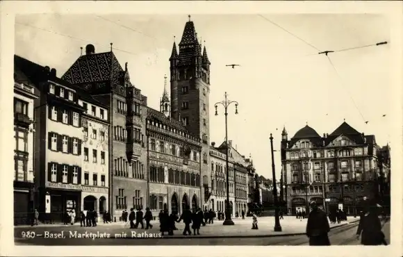 Ak Basel Schweiz, Blick zum Marktplatz mit Rathaus