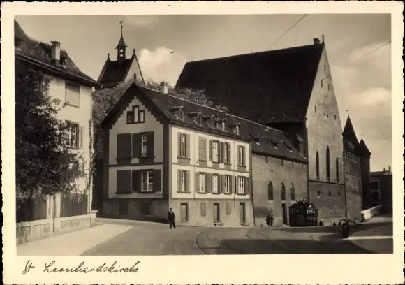 Ak Basel Schweiz, St. Leonhardskirche, Straßenbahn