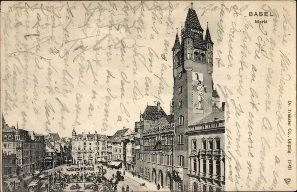 Ak Basel Stadt, Markt, Rathaus