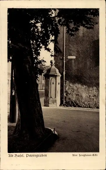 Ak Basel Stadt Schweiz, Alt Basel, Petersgraben, Alte Zeughaus Ecke
