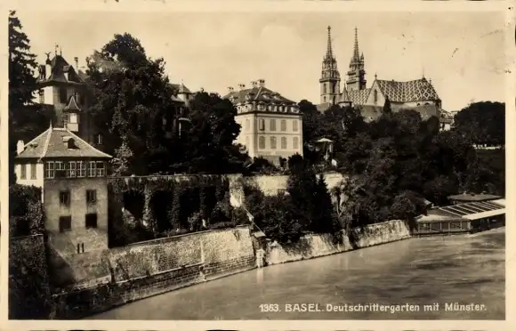 Ak Basel Stadt Schweiz, Deutschrittergarten, Münster