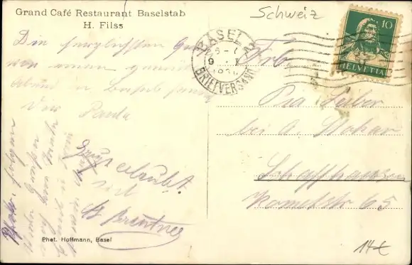 Zustand, siehe Scan, gelaufen- Inh. H. Filss - ca 14 cm X 9 cm