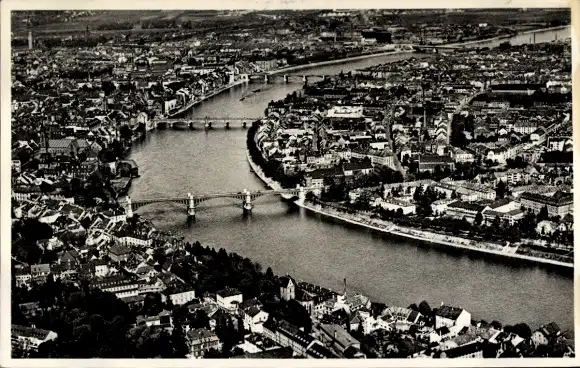 Ak Basel Stadt Schweiz, Luftansicht von Rhein, Brücken, Stadtansicht