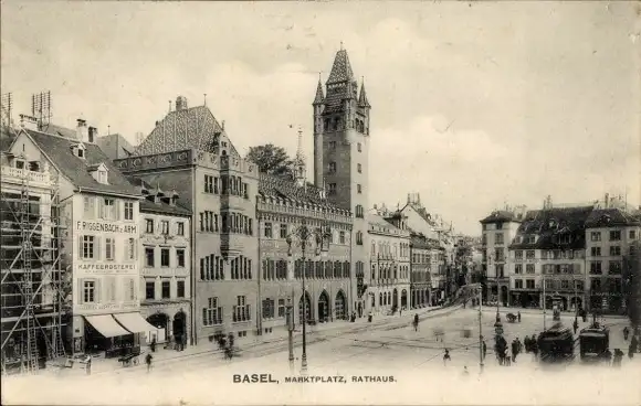 Ak Basel Stadt Schweiz, Marktplatz, Rathaus