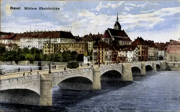Ak Basel Stadt Schweiz, Mittlere Rheinbrücke
