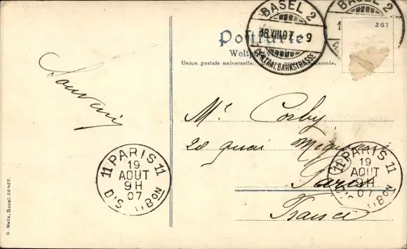 Zustand, siehe Scan, gelaufen, 1907 - ca 14 cm X 9 cm