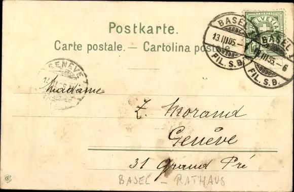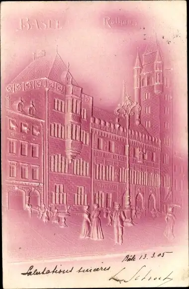 Ak Basel Stadt Schweiz, Rathaus, Architektur, Menschen, religiöse Symbole