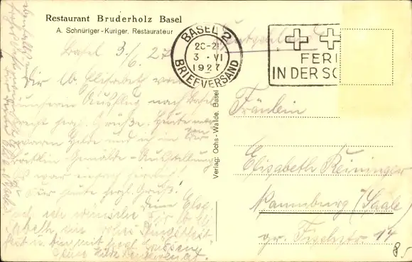 Zustand, siehe Scan, gelaufen, 1927- Restaurateur A. Schnüriger-Kuriger - ca 14 cm X 9 cm