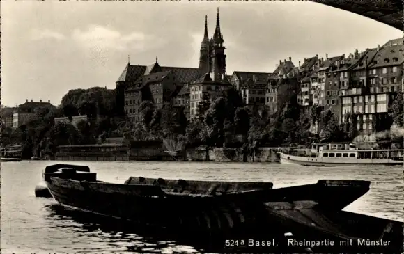 Ak Basel Stadt Schweiz, Rhein, Münster, Boot