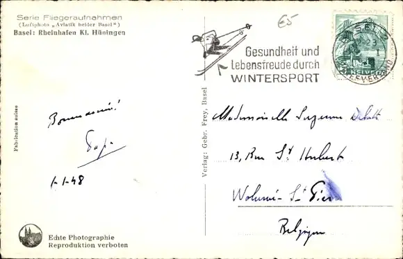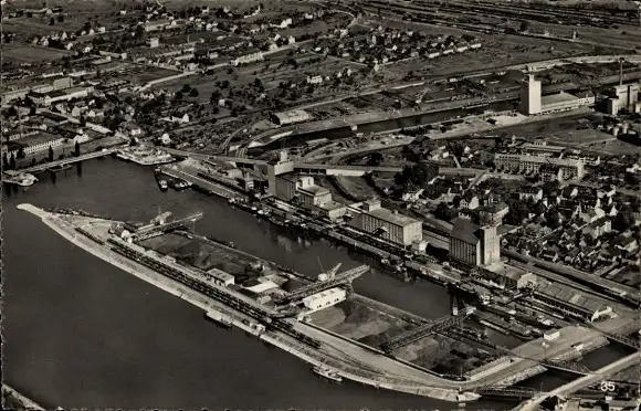 Ak Basel Stadt Schweiz, Rheinhafen, Fliegeraufnahme