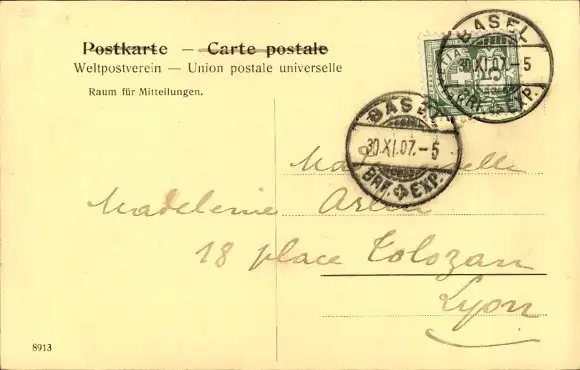 Zustand, siehe Scan, gelaufen, 1907 - ca 14 cm X 9 cm