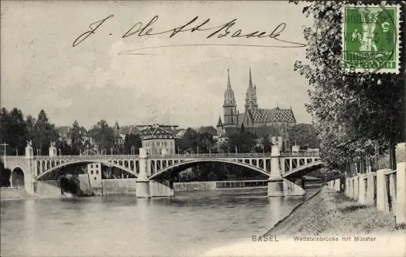 Ak Basel Stadt Schweiz, Wettsteinbrücke, Münster