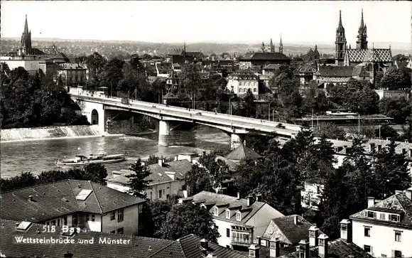 Ak Basel Stadt Schweiz, Wettsteinbrücke, Münster