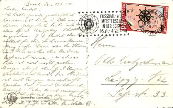 Zustand, siehe Scan, gelaufen, 1954 - ca 14 cm X 9 cm