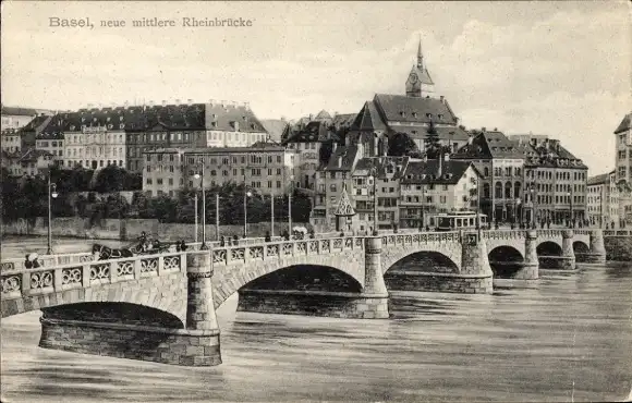 Ak Basel Stadt Schweiz, neue mittlere Rheinbrücke