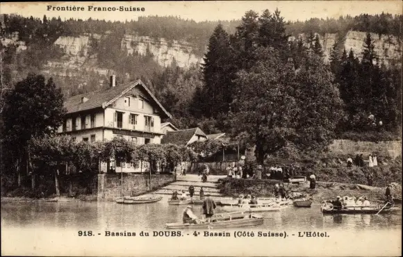 Ak Bassins du Doubs, L'Hotel, Frontiere Franco-Suisse