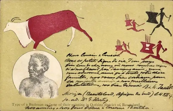 Ak Basutoland Lesotho, Buschmann mit Felsenmalereien
