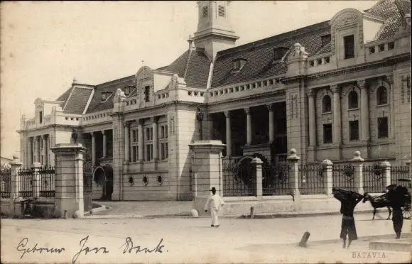 Ak Batavia Jakarta Java Indonesien, Amtsgebäude, Passanten
