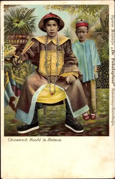 Ak Batavia Jakarta Java Indonesien, Chineesch Hoofd, Mann und Junge in Trachten