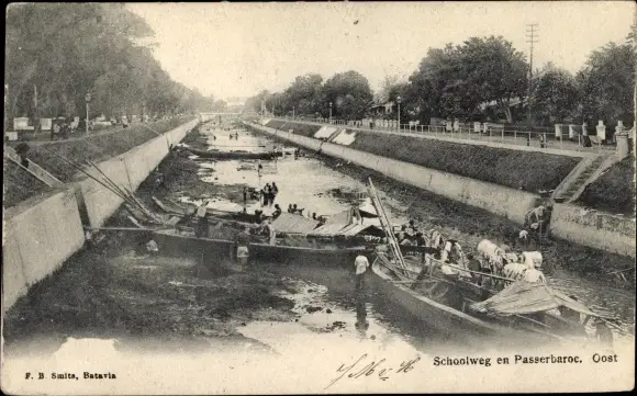 Ak Batavia Jakarta Java Indonesien, Schoolweg und Passerbaroc