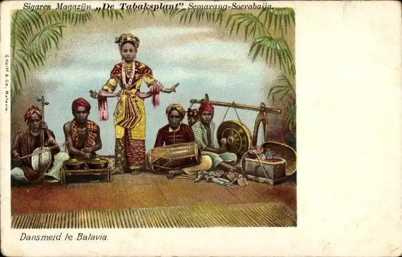 Ak Batavia Jakarta Java Indonesien, Tänzerin, Musizierende Männer