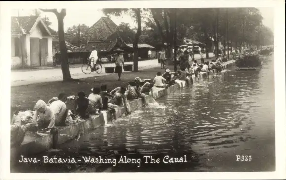 Ak Batavia Jakarta Java Indonesien, Washing along the canal, Wäscherinnen